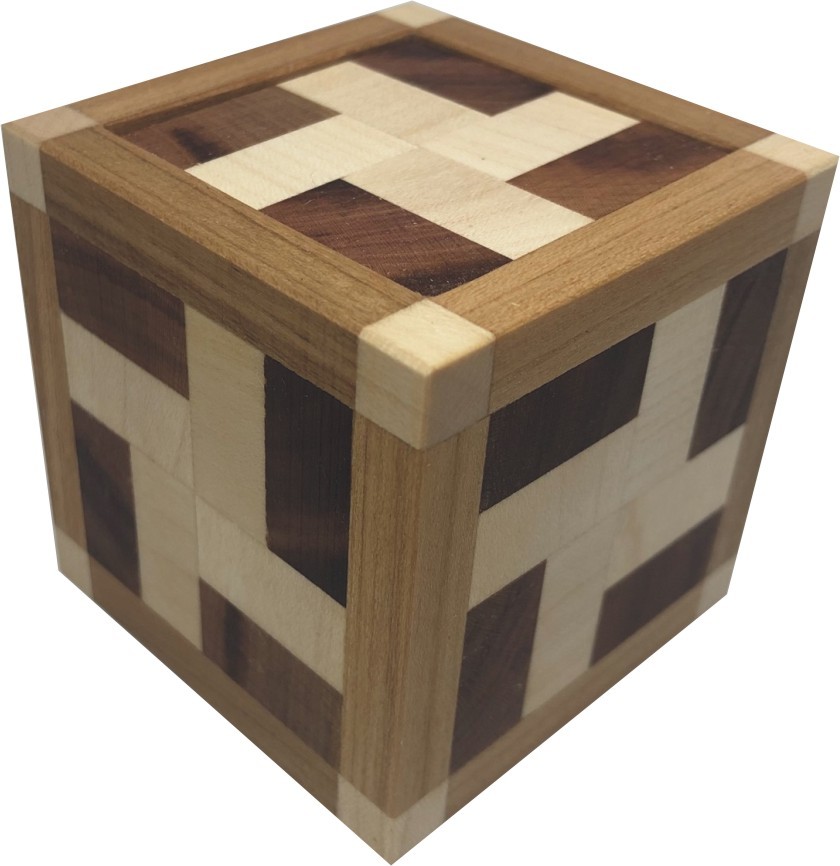 Inside is eight piece packing puzzle - Minibox C2. I made several version of wooden boxes with lids. I numered them from 501 to 514. This is one of them.