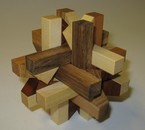 Six pieces coordinated motions puzzle. The goal is to remove the wooden marble from the puzzle. You can use the inside space to hide a gift.