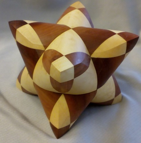 This is a four piece coordinated motion puzzle. I called this kind of my puzzles NEW RANGE. When I started to sand my puzzles, I discovered new possibilities in oval and rounded shapes. These shapes and using different contrasting woods created this kategory. Some of them I called as Ocvalhedron, Flowers, Bicones ... and they have specification as number so I can orientate in these various puzzles.