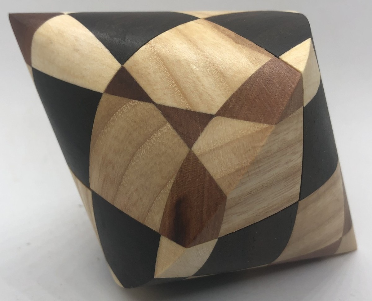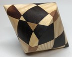 This is a four piece coordinated motion puzzle. I called this kind of my puzzles NEW RANGE. When I started to sand my puzzles, I discovered new possibilities in oval and rounded shapes. These shapes and using different contrasting woods created this kategory. Some of them I called as Ocvalhedron, Flowers, Bicones ... and they have specification as number so I can orientate in these various puzzles.