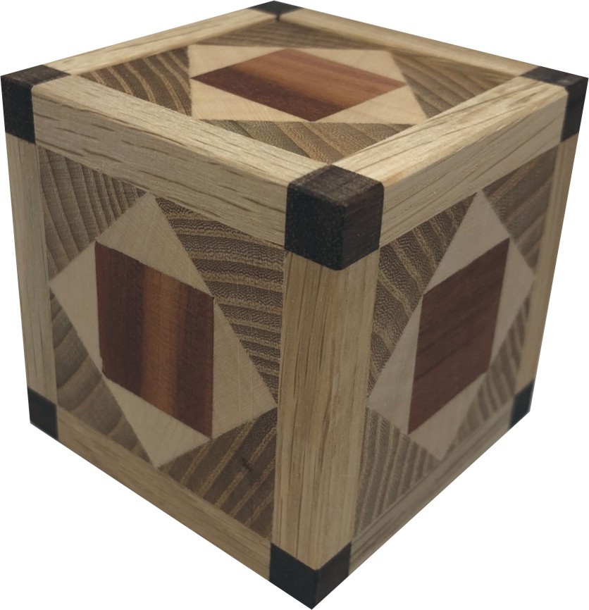 Inside is eight piece packing puzzle - Minibox C2. I made several version of wooden boxes with lids. I numered them from 501 to 514. This is one of them.