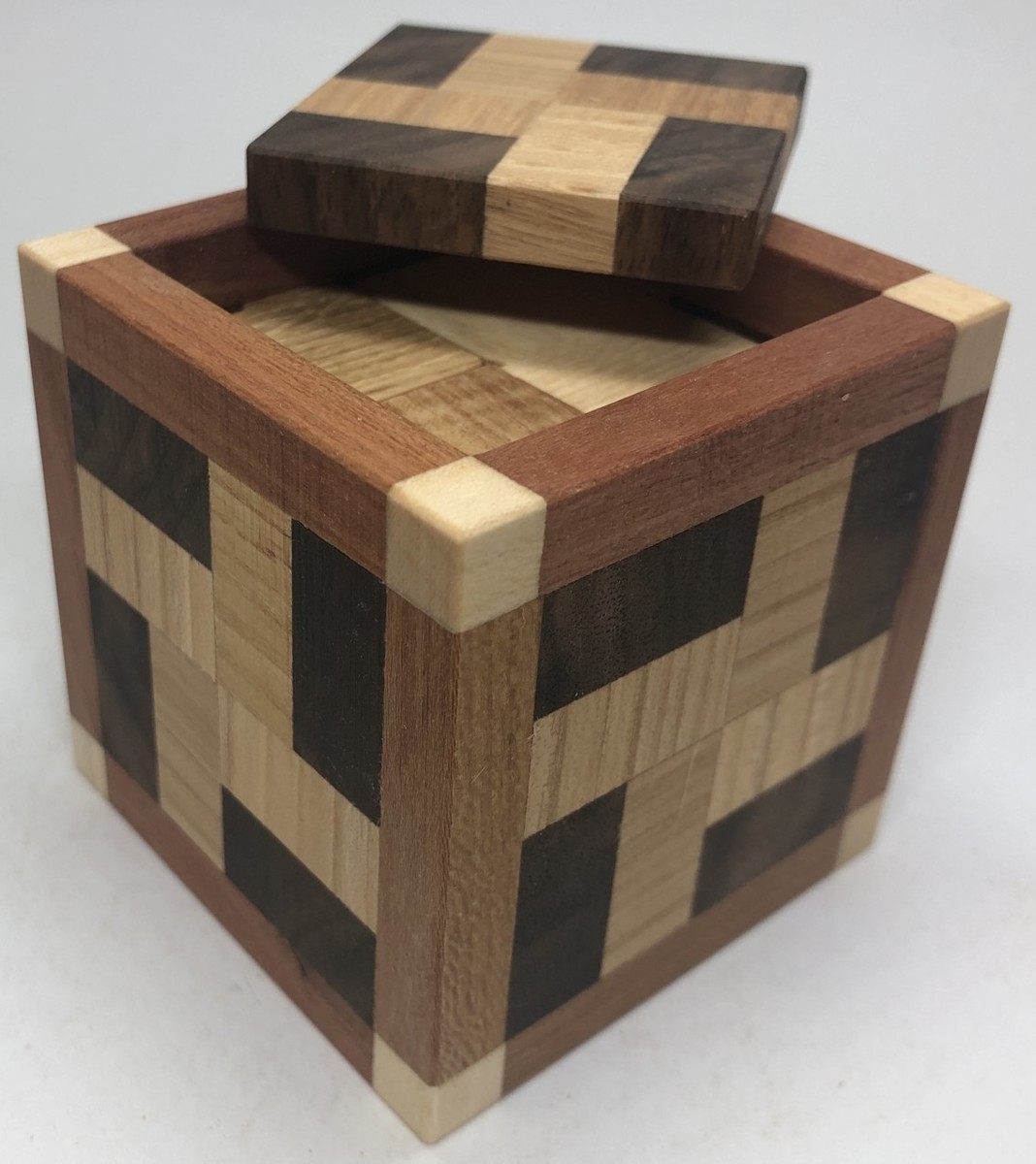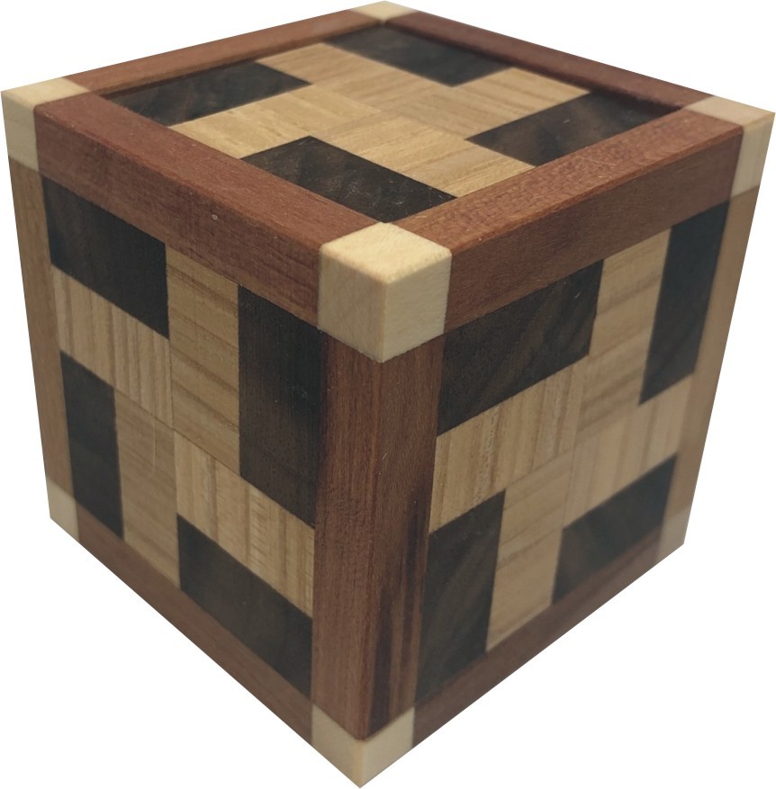 Inside is eight piece packing puzzle - Minibox C2. I made several version of wooden boxes with lids. I numered them from 501 to 514. This is one of them.